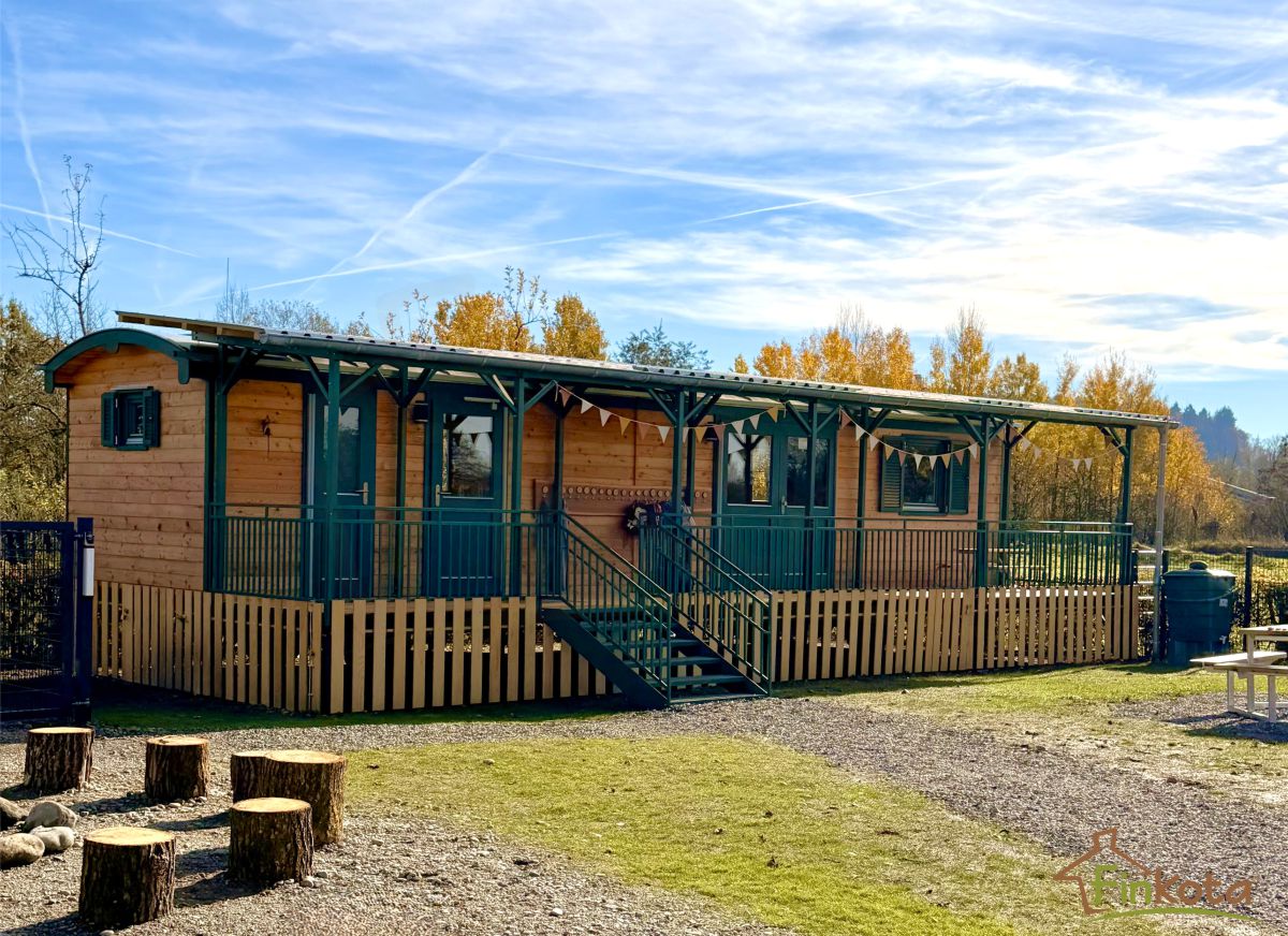 „Für unseren im Mai 2024 eröffneten Waldkindergarten haben wir uns als Rückzugsort für den Wichtelwagen Frieda der Firma Finkota entschieden, da uns dieser mit seiner Größe und Ausstattung überzeugt hat. Es ist ein gut durchdachtes Ausstattungskonzept auf kleinem Raum. Die Waldkinder und die pädagogischen Mitarbeitenden finden den Wichtelwagen toll und fühlen sich sehr wohl. Vor allem die große überdachte Terrasse lädt zum Spielen, Essen und Verweilen ein. Die Frieda ist ein echter Hingucker bei Besuchern und Spaziergängern.